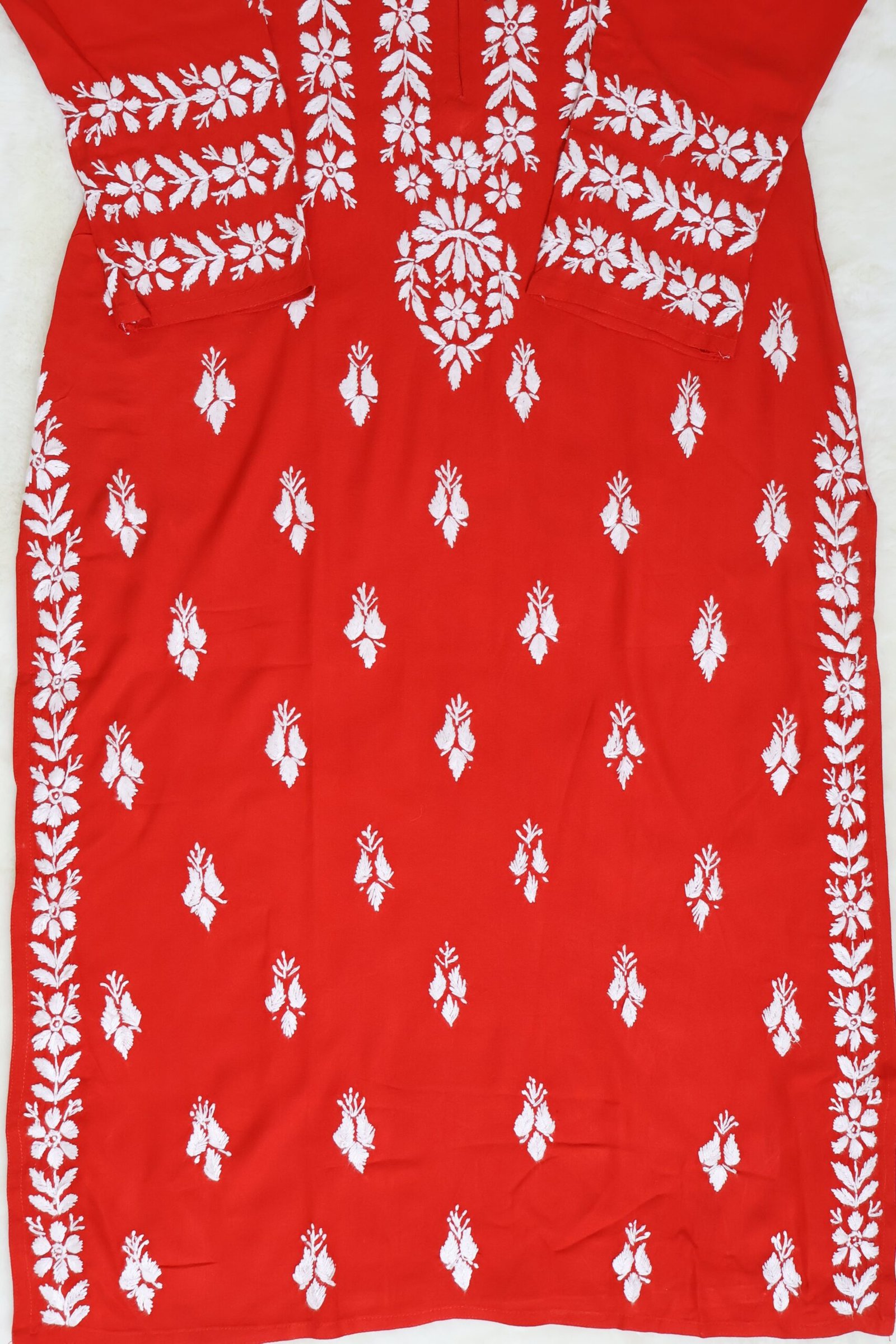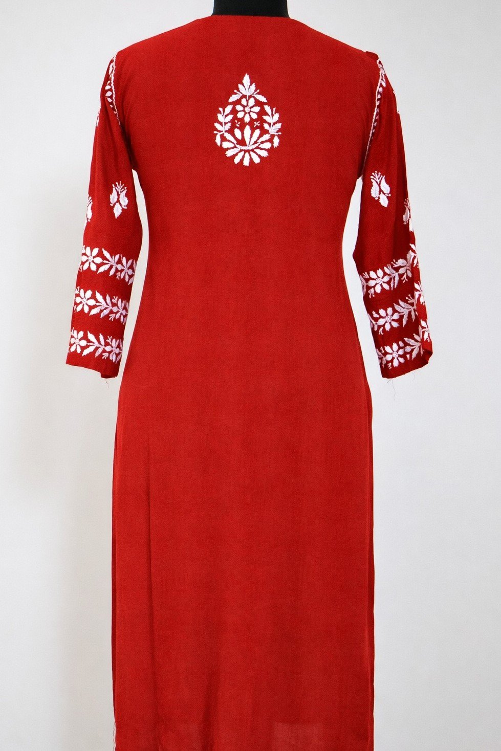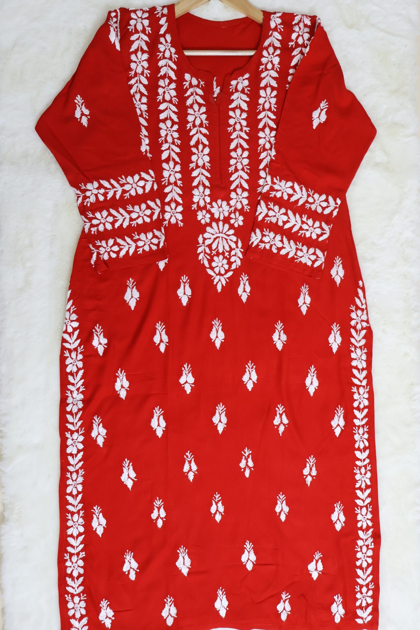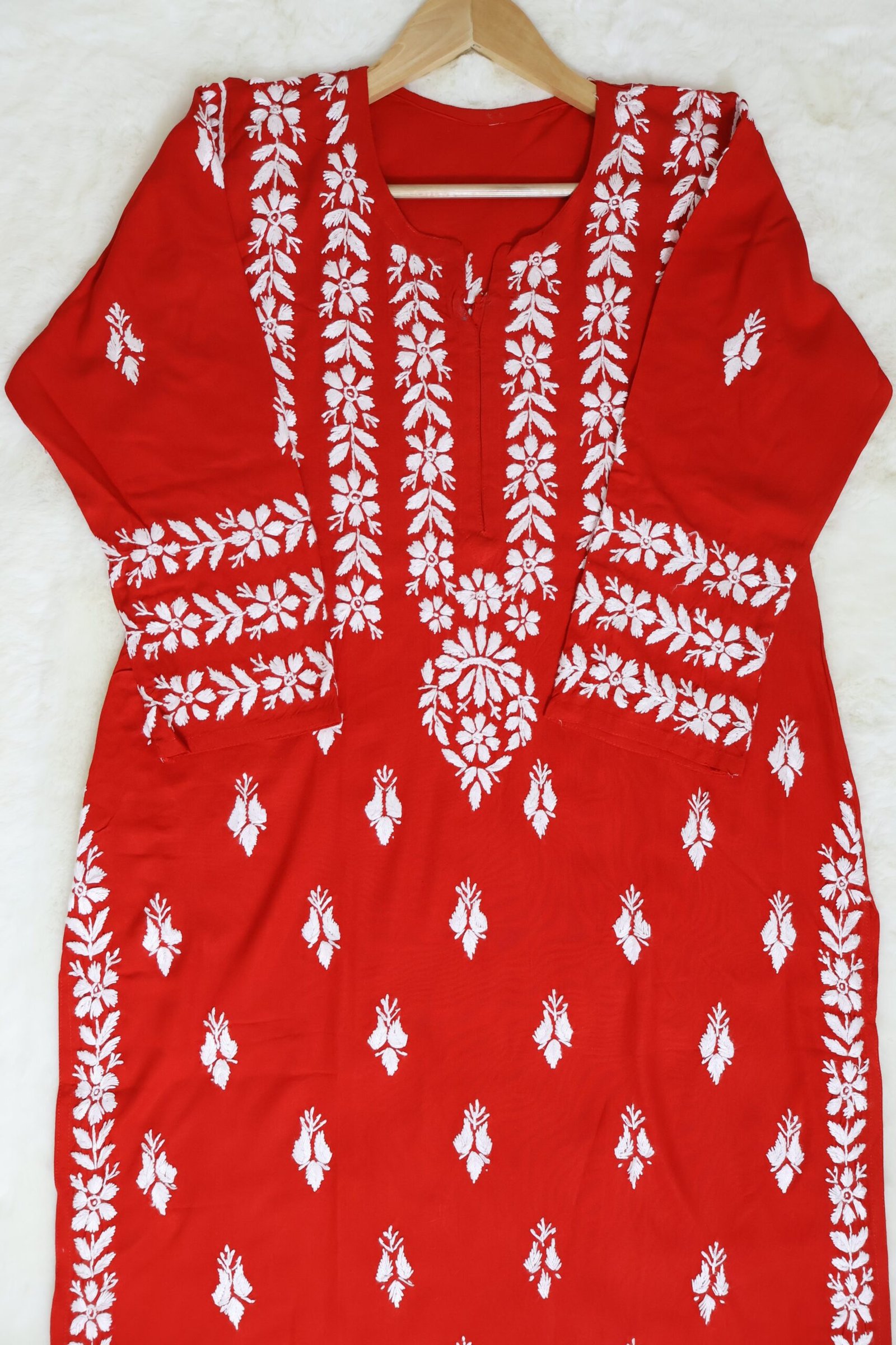 Bring home the timeless charm of traditional chikankari with this beautifully crafted Red Embroidered Kurti by PureWear Creations.