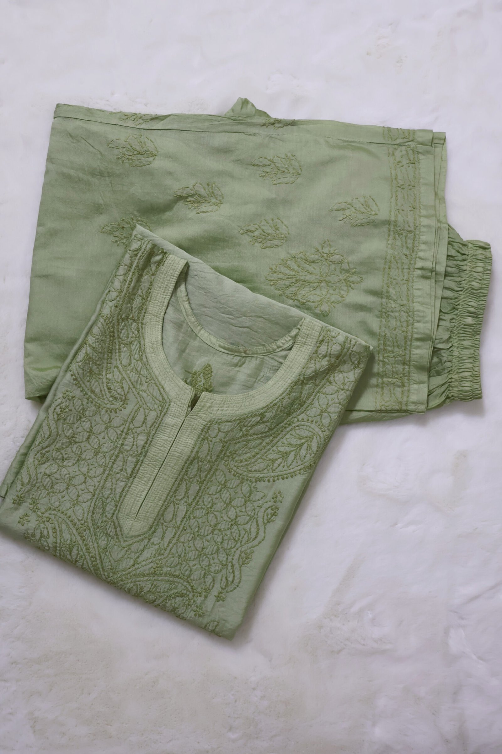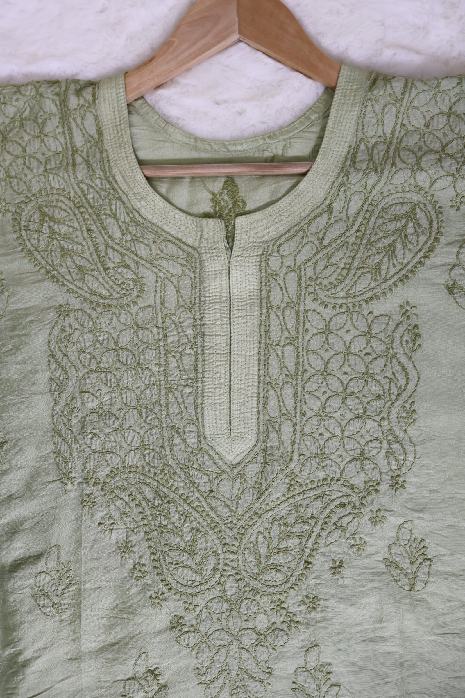All our chikankari products are handcrafted with intricate embroidery work. Slight variations in patterns, thread work, and finishing may occur due to the handmade nature of the process. These minor differences are not defects but a unique characteristic of authentic handcrafted products. Additionally, product color may slightly vary due to lighting, photography, and screen settings.